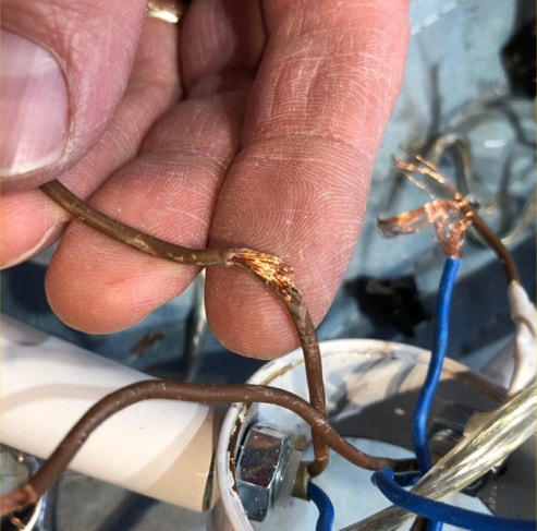 I’m not going to reveal the maker, because I’m not looking for trouble, but this was a $7000 chandelier and it was still this messed up. I suggest having your electrician check out the internal wiring of anything that seems like it might have been “hand crafted”, ‘cause we see this kind of stuff far too often.