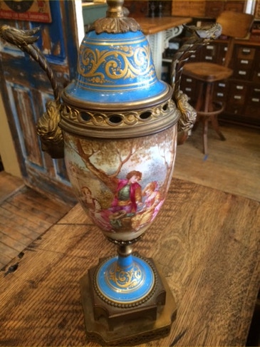 This lamp rewire seemed pretty run-of-the-mill, until we opened the challis and discovered the 1753 Sèvres porcelain mark. Not being appraisers, we have no authoritative way to distinguish between this and the fakes that even Sèvres themselves made throughout the years, but nonetheless it's pretty exciting. Our customer has two, and save the hole drilled during the decades-old lamp conversion, they are in absolutely mint condition!