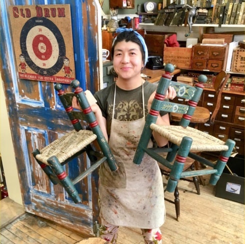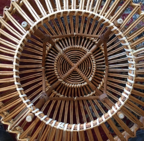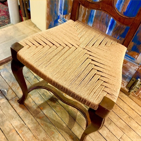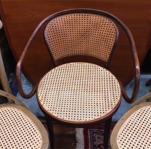 Here’s Koko weaving the last section of shaker tape on this sweet bentwood rocker. We love how freaked out your eyes get when you stare at the pattern for too long.