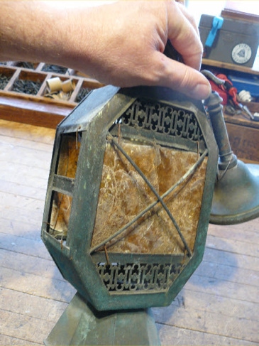 This fantastic Porch Lamp is in for a re-wire, but we also get to replace the missing mica sheets and re-build the hinge for the access door. This is a job for Seth.