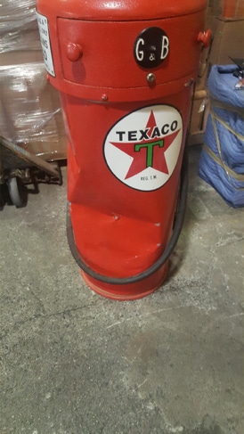 This is a “Before” picture of an antique gas pump that our customer discovered the hard way was quite top-heavy.