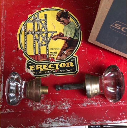 I adore my customers! This is a photo I received from local contractor @laskyjeffrey looking to match some knobs, but look at the picture... great composition, fantastic colors, and an Erector Set as a tool box! Nice touch!