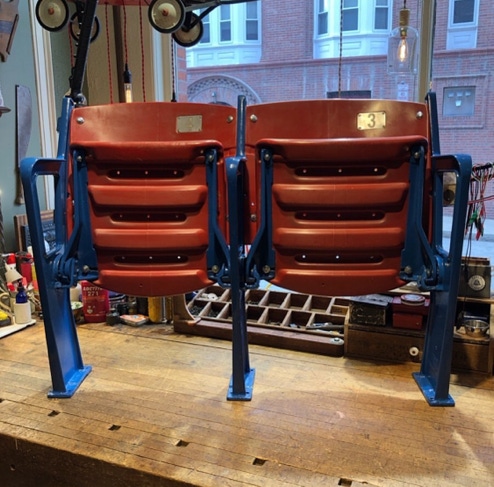 Here’s Seth finishing up these awesome Fenway seats our customer won at auction.