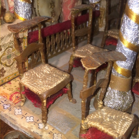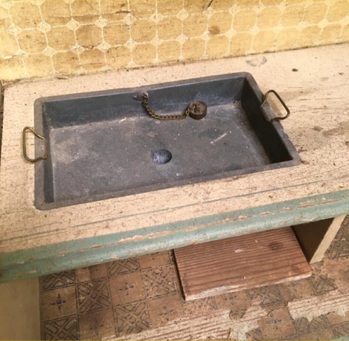 This antique doll’s kitchen will need a complete overhaul, and we’re super excited to be the ones to do it! We’ll be taking this one all the way... right down to recreating the tile paper, and touching up the worn-away paint. Check out the little stopper for the sink!
