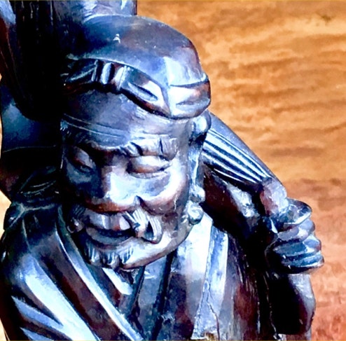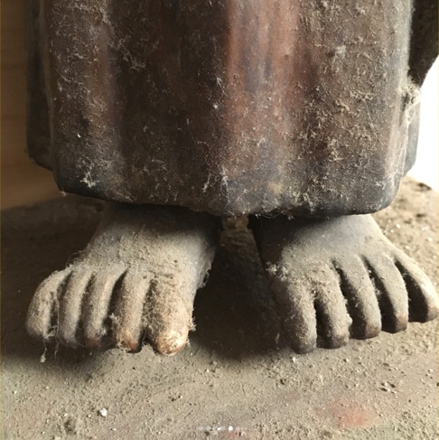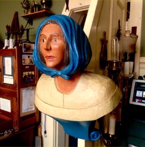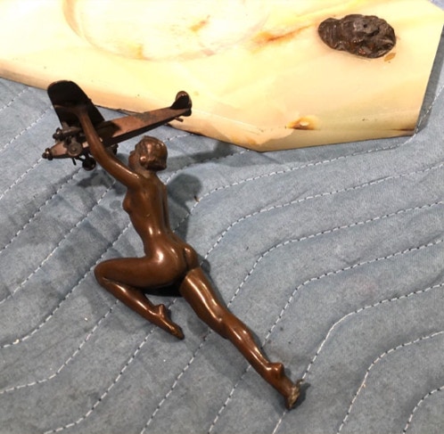 When this commemorative War Bonds statue came to us it was massively damaged. Koko expertly formed, carved and colored all the missing and crushed areas. Here she’s just doing a little touch-up.