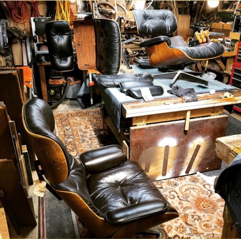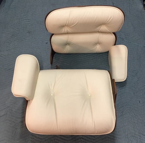 Attack of the Eames Chairs! It would seem that the epoxy holding the shock mounts on the earlier Eames Chairs has reached its lifespan, and they’re all failing at once. We see such a continual stream of these, that we now have “Eames Chair Day”, where that’s all we do for the whole shift. Who woulda thunk.