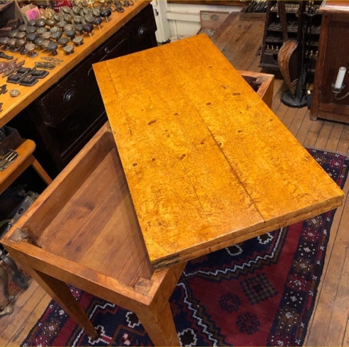 So, into the store comes, as Seth puts it, “This cool old desk” with its hinges bent and broken.