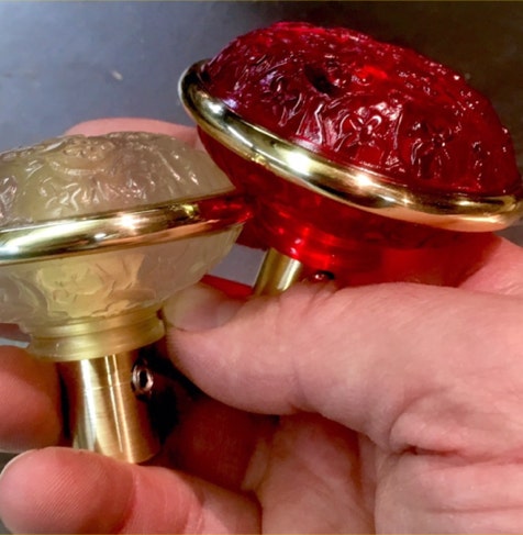 Here’s an awesome evolution: A customer of ours adored a beautiful brass Tiffany’s doorknob we had in the shop, but we only had one, so… We made a silicone mold of the original, and duplicated an entire house’s worth in clear plastic poured around glass shanks we turned for the job.