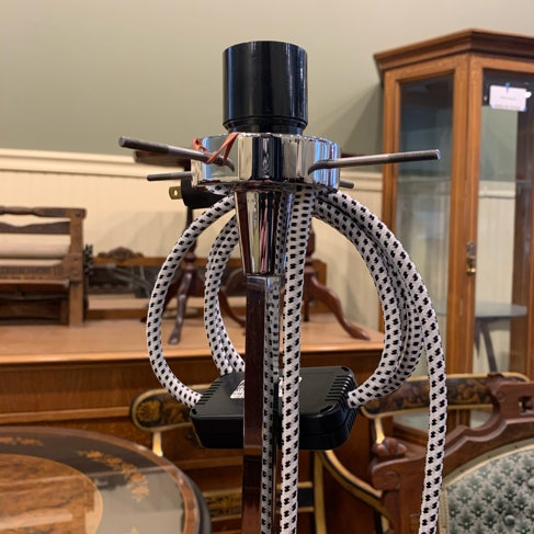 We’re not normally one to dis on other people’s work, but the number of errors found in this brand new, Bauhaus style lamp, blows our minds. First off, not a drop of Loctite, or even a lock washer, which allowed the whole thing to fall apart on the first bulb change. Then, because the switch was too tall, they bent the blades back to keep them from touching the metallic base, put the screws in from the opposite side, and wrapped it in a mountain of electrical tape. This was the tip of the iceberg of an amazingly irresponsible wiring job. We were delighted to repair this and make it safe to operate!
