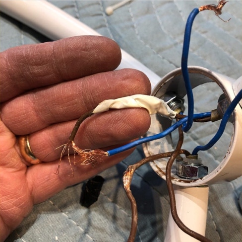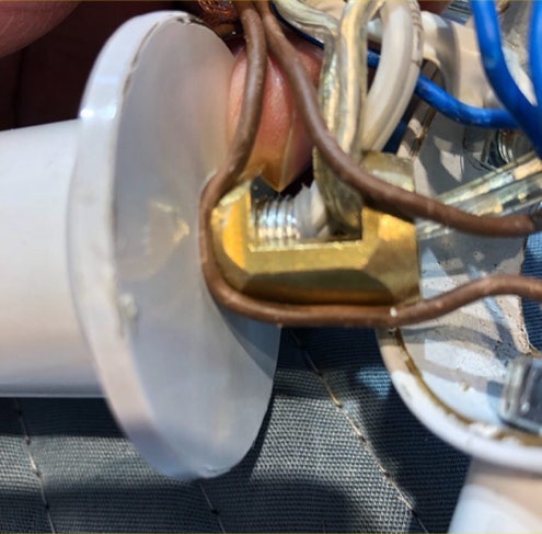 I’m not going to reveal the maker, because I’m not looking for trouble, but this was a $7000 chandelier and it was still this messed up. I suggest having your electrician check out the internal wiring of anything that seems like it might have been “hand crafted”, ‘cause we see this kind of stuff far too often.