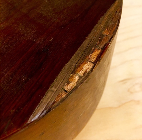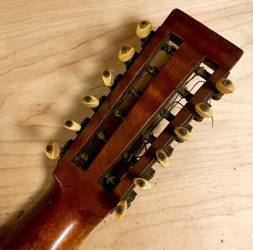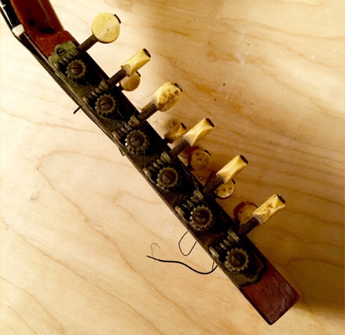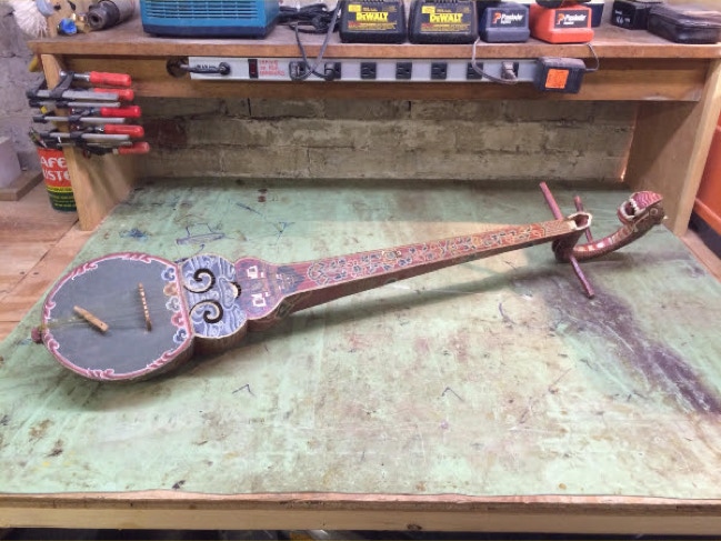 This awesome dragon-faced oud came in with a broken nose, a couple missing tuning pegs and some scratched up paint. These far-out repairs are exactly why we love our jobs, but this one is even cooler, because the customer found it in the trash!