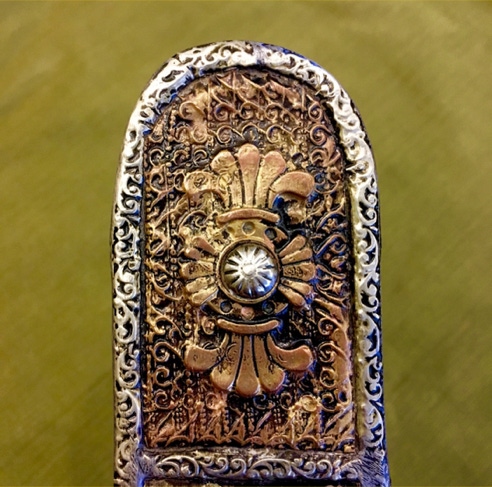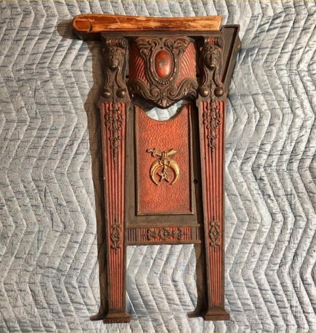 It’s a vintage seat-end from an unknown Masonic Temple!