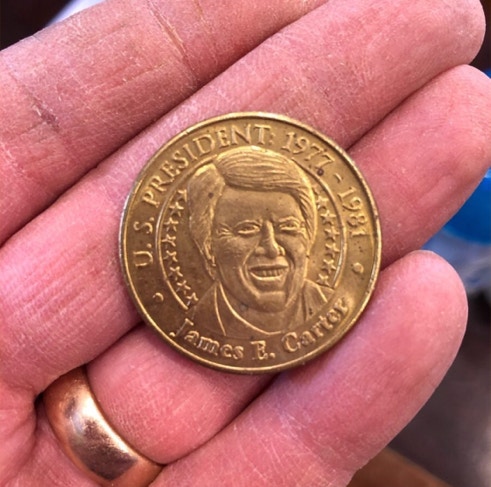 Here’s a cute little prize that fell out of a crevice in a customer’s desk while we were working on it. This Sunoco “presidential coin” featuring Jimmy Carter.