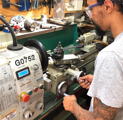 I love helping the newer folks in the shop grow their skill set. Here’s Jamie getting his wings on the metal lathe, making parts for a custom billiard lamp. This dude is learning so fast, what a trip! Go Jamie!