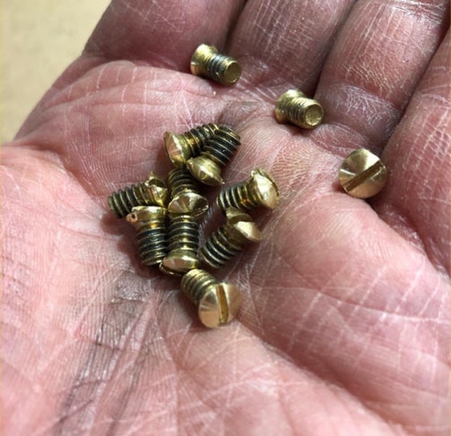 Getting our hands on solid brass door knob screws has been increasingly hard, with lots of companies shipping what they say will work, and it simply doesn’t. So.... I’ve decided to machine them myself! So far it’s still taking a couple minutes per screw to get it right, but I’m getting faster, and in the end, they’re exactly what I want. This was definitely worth missing dinner for.