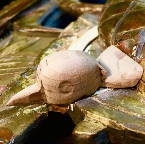 This duck is one of three that proudly defended a customer's indoor garden for years, but was no match for their brand new cat! These little repairs require nothing more than a touch of glue, but bringing them to us ensures that the right glue is used and in the right quantity. We rarely charge for single-break glue jobs like this, it's just nice to be able to help people save the little treasures that make them smile.