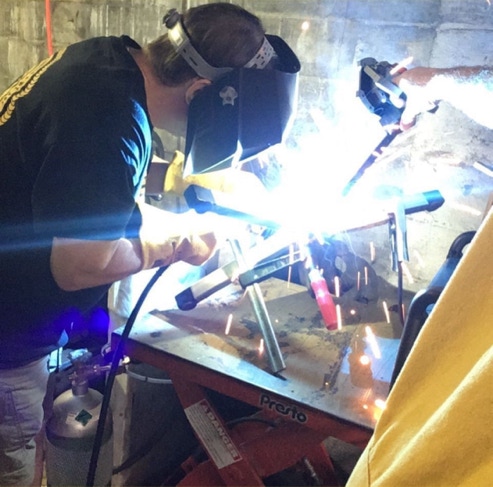 Jamie, our evening shift guy, babysitting a questionable tangle of clamps.